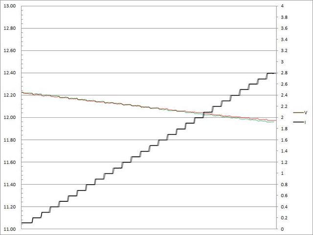 電壓下降,輸出電流超過2.8A截止