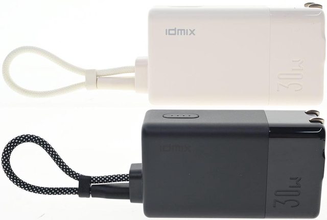 ▼米白版(左)與黑色版(右)IDMIX MR CHARGER CH10 Chill豆腐 30W雙模行動電源直出線