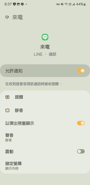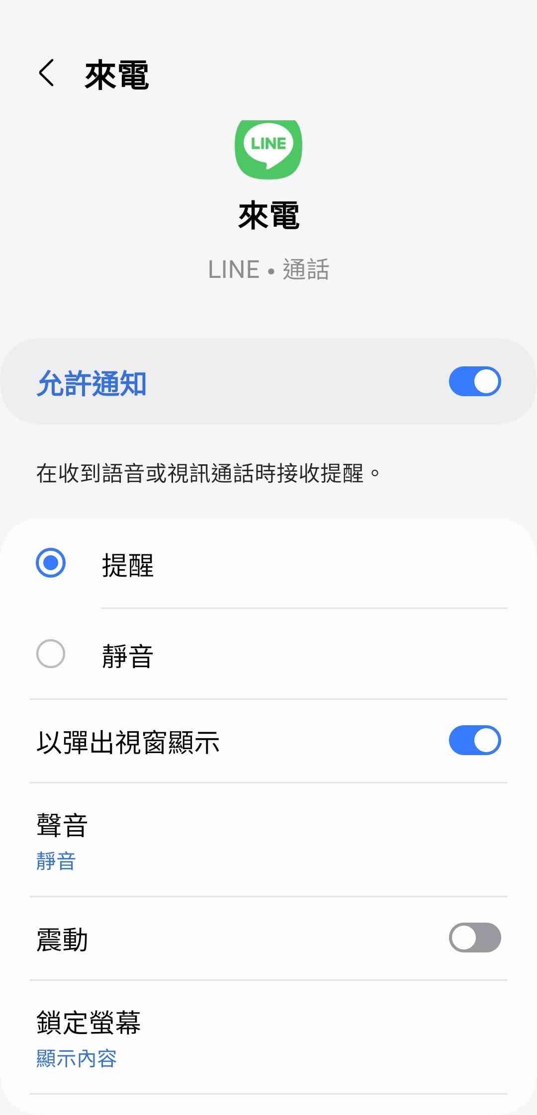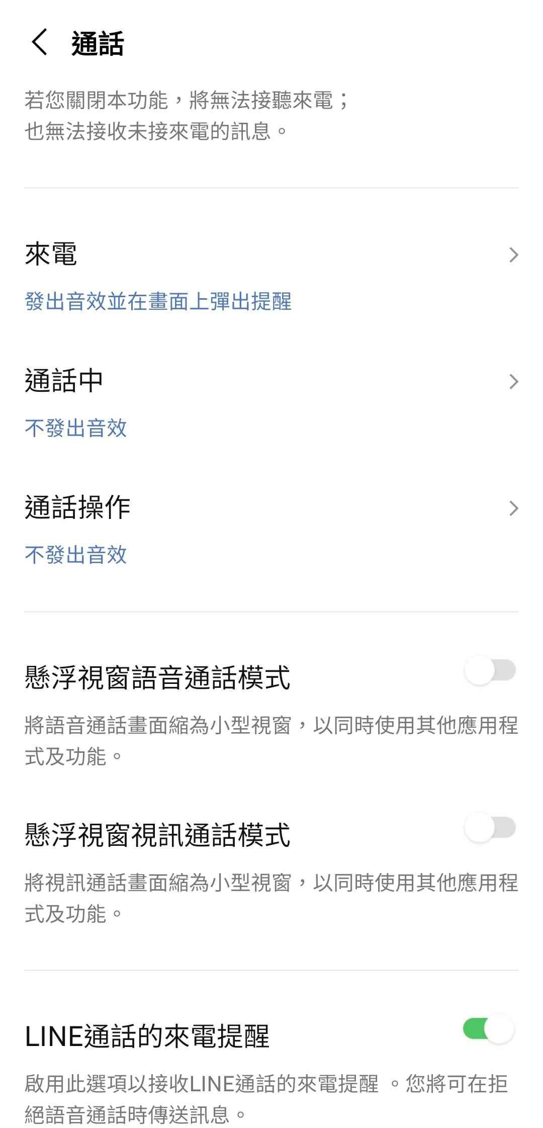 推 tnfsh01008 : 到line的設定裡找 點通話 打開來電提醒05/06 16:12
