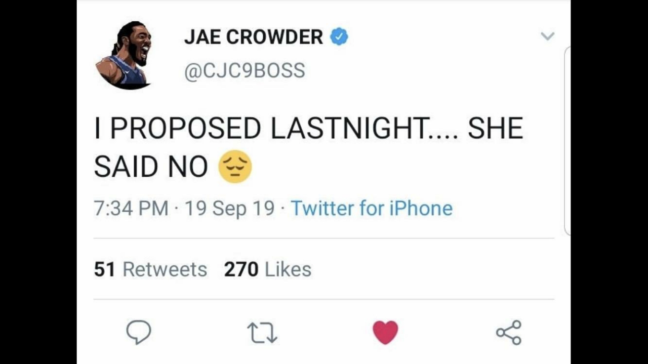 推 DarkHolbach : 無聊,NBA球員不可能求婚失敗 07/23 10:10