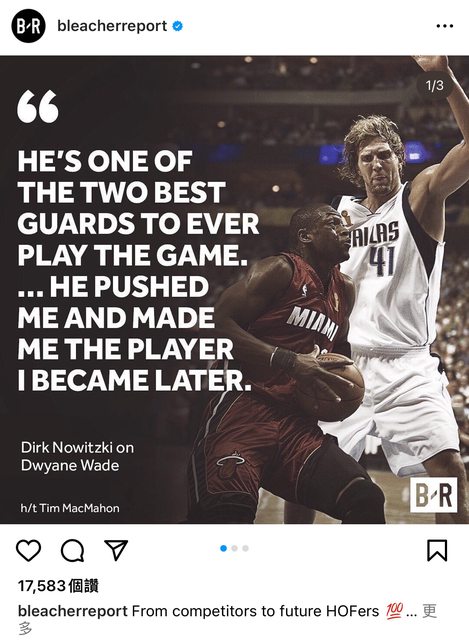 : Dirk接受採訪時大力讚揚Wade, 並表示Wade是史上最佳後衛前二名,他驅使我且使我成為一個更好的球員,成為後來的我。 : 短評或心得:他要說的應該是他交手過的後衛但所以MJ、 Kobe誰第三名? : 星期六中午NBA釣魚大賽開始 : https://i.imgur.com/IbqpnXt.jpg