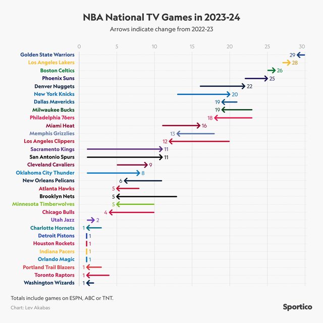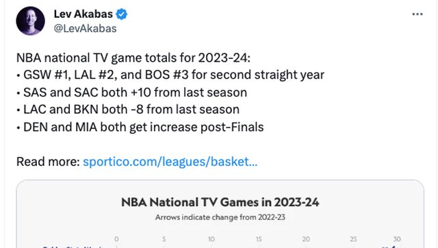 標題[花邊] NBA下一季的全國轉播:馬刺和國王多10場