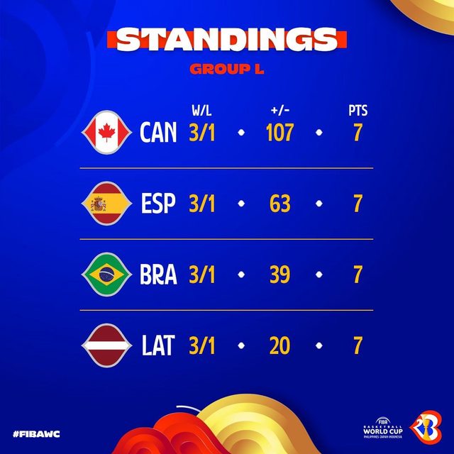 剛看到Fiba官方IG的貼文,有各組戰績跟淨勝分(+/-)的圖
