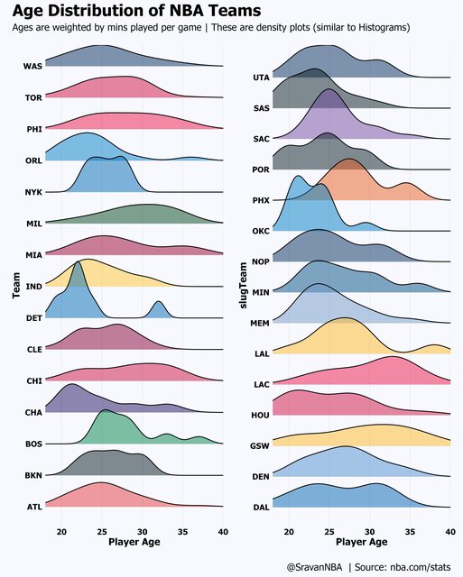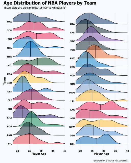 NBA 各隊伍的年齡分佈」