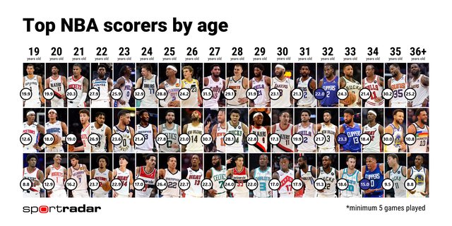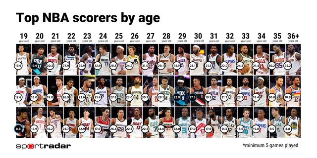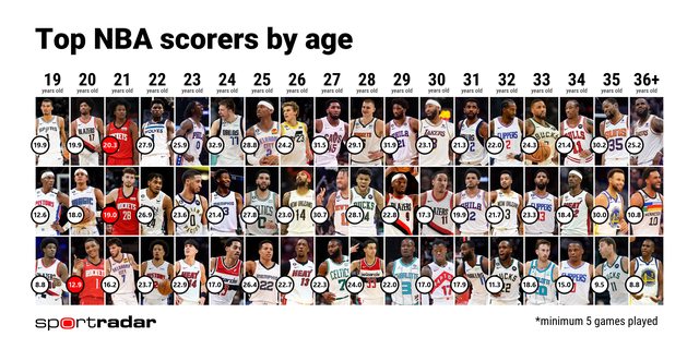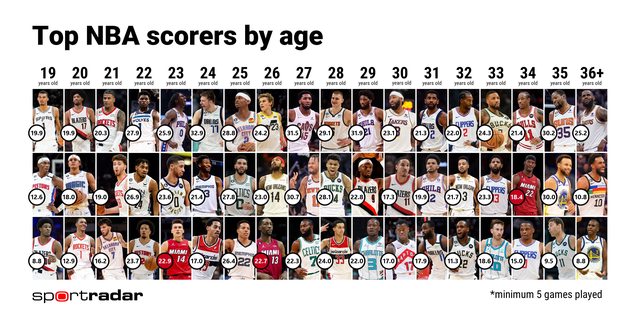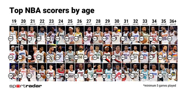 勇士隊和76人隊均衡的年齡分佈特別引人注目,顯示出他們擁有年輕與老經