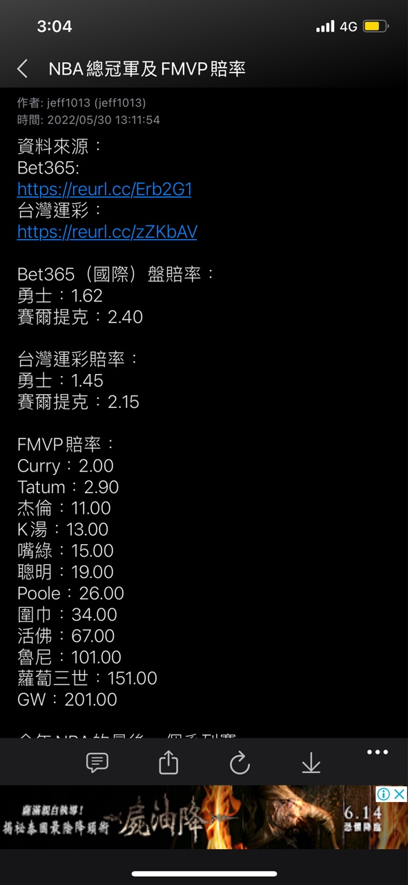 → jeff1013 : 當年明明冠軍賽開打前勇士賭盤是低賠 06/06 02:55