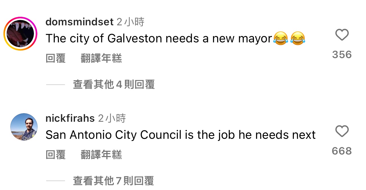 → yowhatsupsli: 有人推薦他去當Galveston或是聖安東尼奧的市長 06/12 10:21