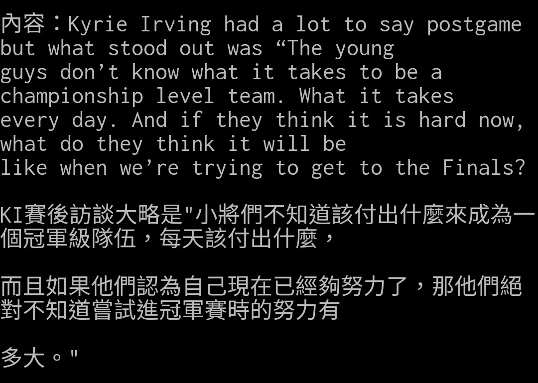 → RIVERWIND : 麼? 他後面自己不跟籃網一起進泡泡 又不打疫苗不出 09/09 15:31