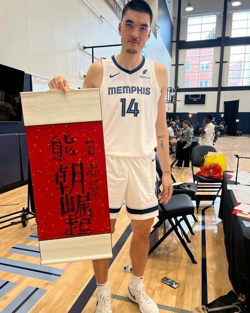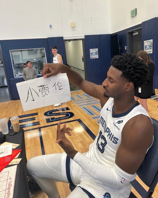曼菲斯灰熊隊因為陣中今年首輪第九順位剛選進華裔中鋒Zach Edey周志豪,所以媒體日 配合中國媒體使用毛筆寫些中文激勵語。 https://www.instagram.com/p/DApXl7Qxxix/?igsh=cTJ3YjdsODViZHdz https://i.imgur.com/wnPf1lh.jpeg