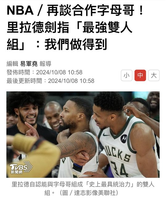 推 mark60917 : 字母哥:公鹿是小李的球隊 10/08 23:06