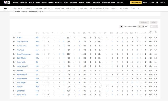 EFF為負的球員中,唯二上場超過30分鐘的球員