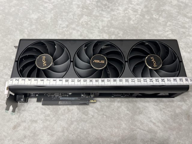 上方就 12VHPWR的接口,右上角也有ProArt字樣做點綴,也可以看到散熱鰭片都採用黑化