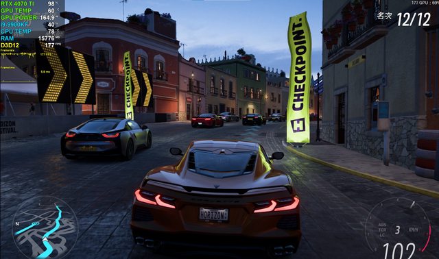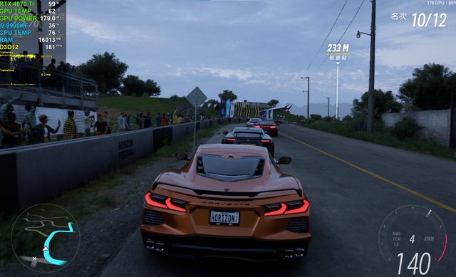 換到另一款forza horizon 5,一樣解析度2560*1440並且效能是開到最高,光追跟DLSS也