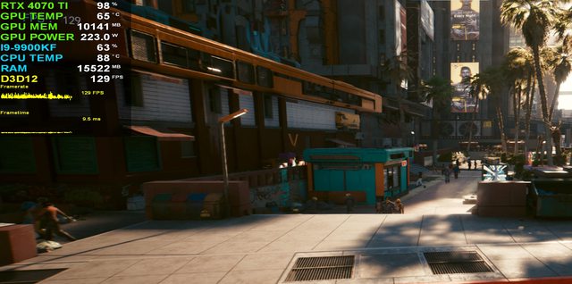 這邊首先測試的是電馭叛客2077,解析度就直接上到2560*1440並且光追開到最高,DLSS