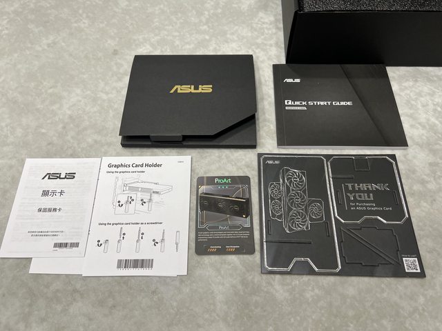 打開後裡面有附了華碩的魔鬼氈跟12VHPWR轉接線以及顯示卡支撐架,如果可以的話還是