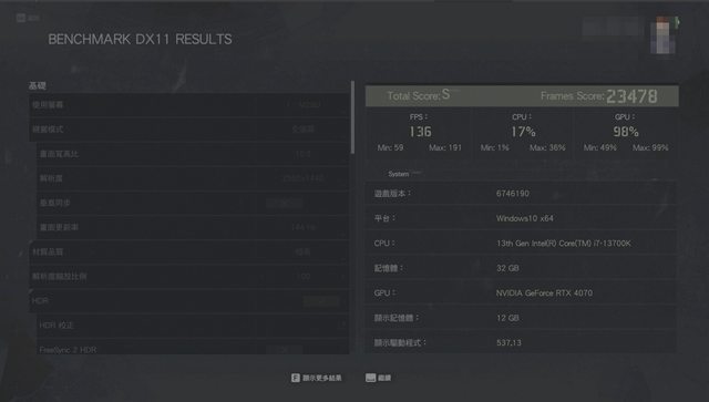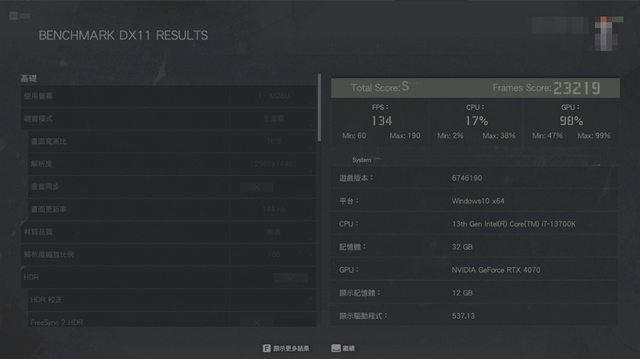 性能測試 13700K + Z790 + RTX4070 + 2K144