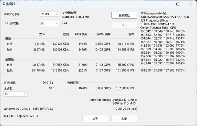 7- ZIP ( 7200MT/s) 經過時間 54/s