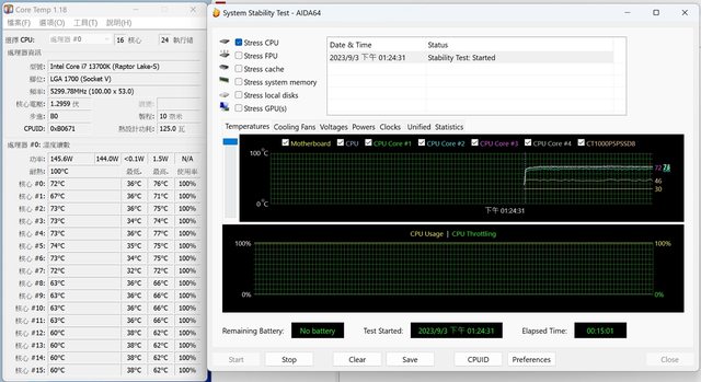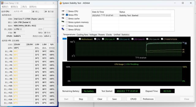 CPU 溫度燒機測試 15min