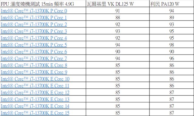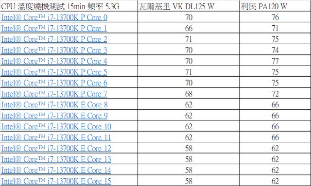 Core i7 13700K溫度差距較大3-4度