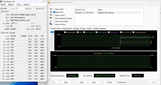 FPU 溫度燒機測試 15min - 功耗約170W