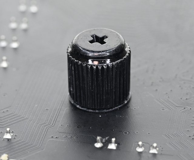 帽孔洞邊緣與螺柱尾端切齊即可,若過度鎖緊,會造成主機板變形及損壞