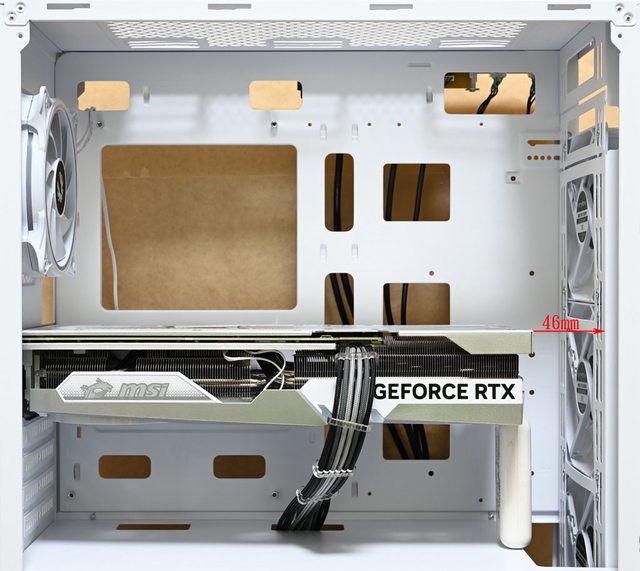 ▼安裝MSI GEFORCE RTX 4070Ti GAMING X TRIO WHITE(337×140×62mm)時,顯示卡前端