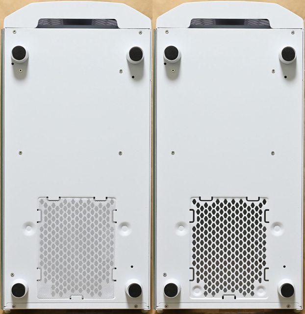 ▼機殼底部圓柱腳座有防滑墊,電源供應器進氣口配置嵌入式過濾網