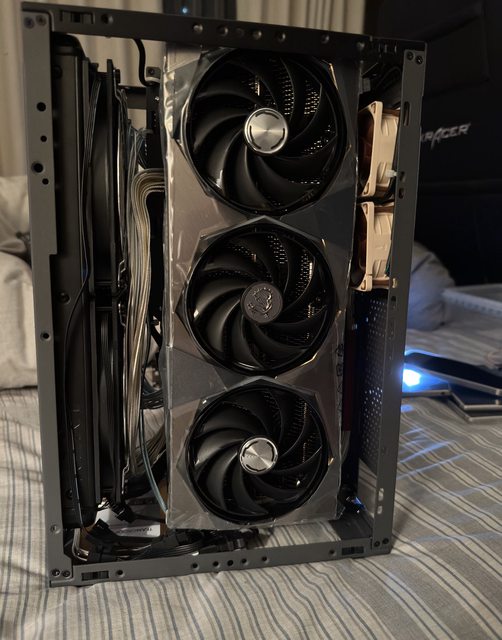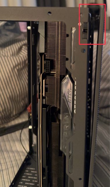 裝電源線的時候發現電供給的 12VHPWR 90度線材插不進去,因為顯卡有做內凹但卡的後面就是隔板