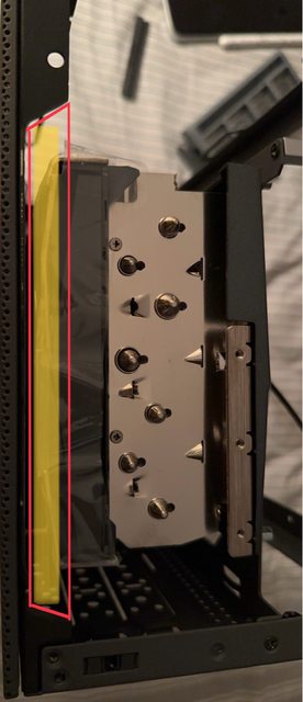 但按照官方的寫法超過可以再繼續往下移但就會需要腳架去墊高機殼,如果單純把支架移除會變成上方沒有扣點側板會蓋不起來(紅色圈圈處)