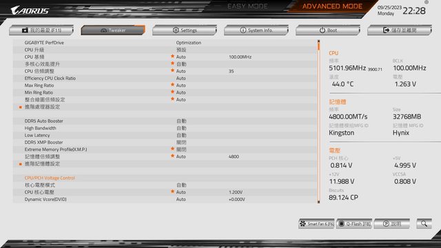 搭配 Z790 AORUS PRO X 的主題UC BIOS也改變的底色