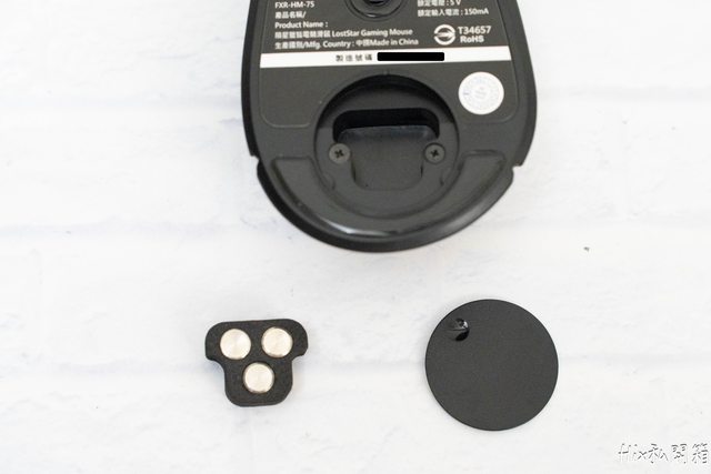 滑鼠含全砝碼的重量為135克,所以簡單數學算一下全部砝碼取出就是135-3*3=126克