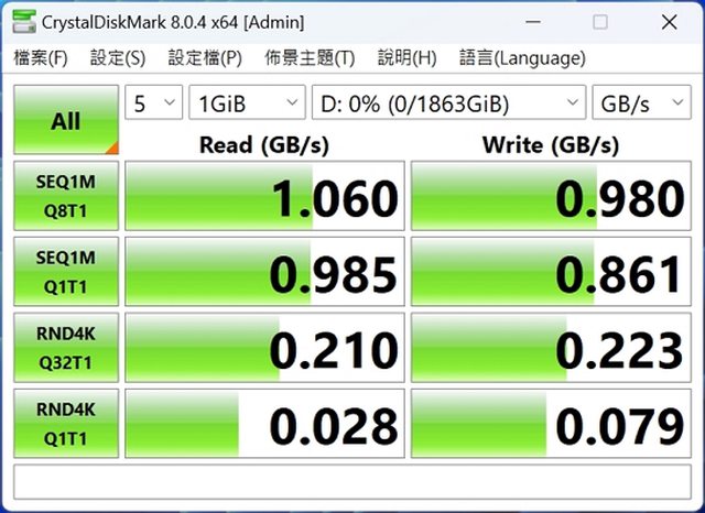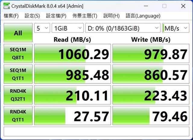 CDM 理論跑分︰讀取1060MB/秒 寫入970MB/s