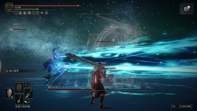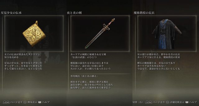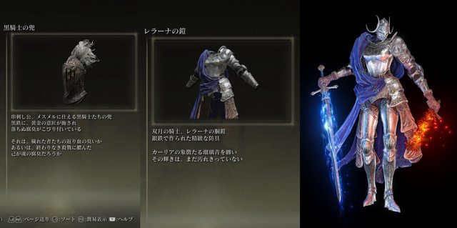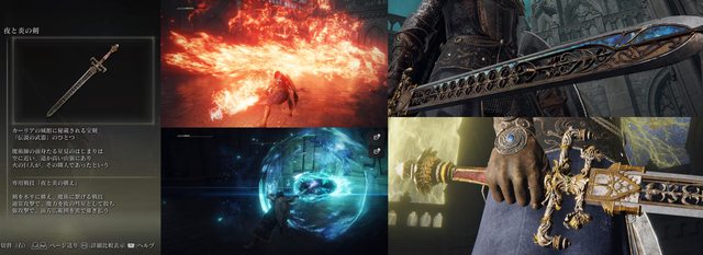 夜與火之劍的戰技,分別是普通攻擊的「黑夜彗星(夜の彗星、Night Comet)」,以及