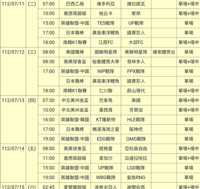 標題[情報] 112-07-11單場場中