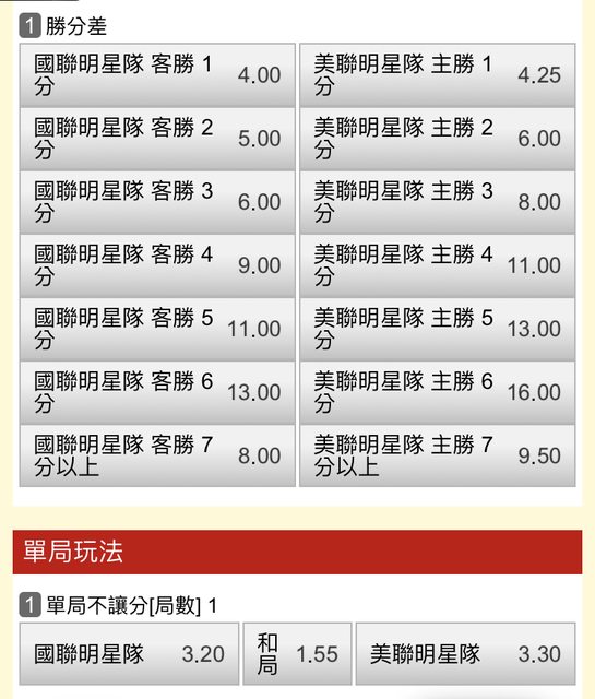 噓 lmgallf: 明星賽沒場中,莊家食屎 1.200.9.39 07/12 08:04