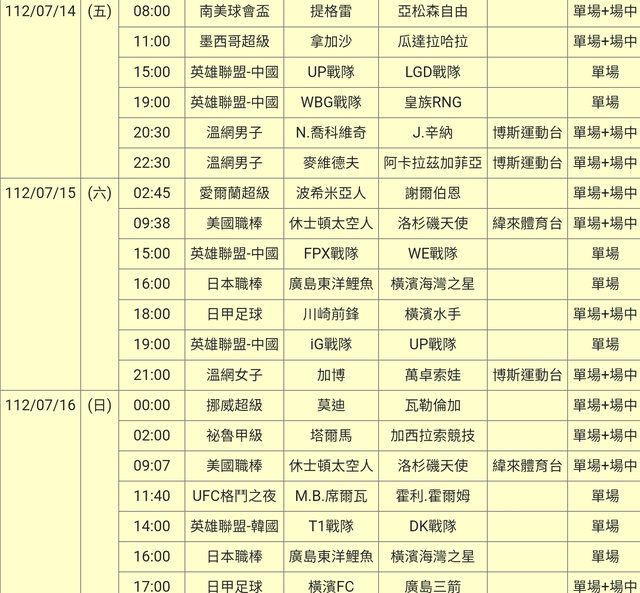 標題[情報] 112-07-14單場場中