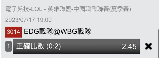 推 lampar5566: 超虐...還好買wbg首局勝 218.161.23.194 07/17 19:37