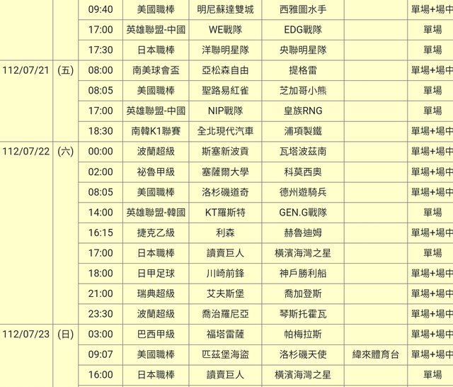標題[情報] 112-07-20單場場中