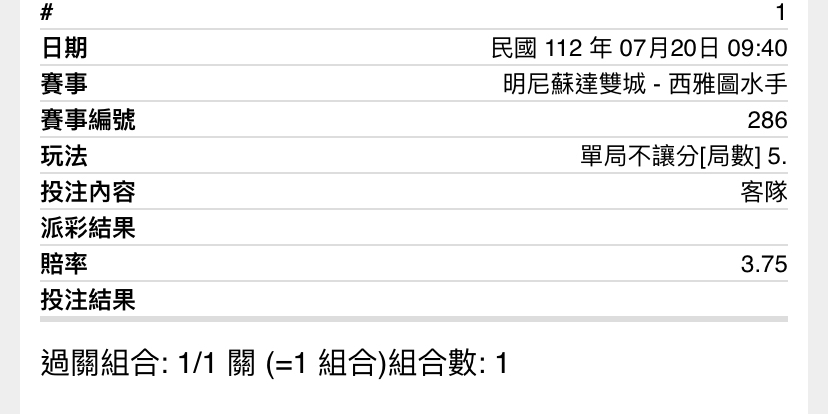 → sky29386558: 有人無出局讓2.5平盤就知道在騙了 126.182.37.26 07/20 12:16