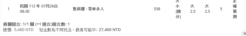 推 nashieh: 那我買賽前3.5大聖保羅正2跟3 111.82.166.128 07/26 10:24