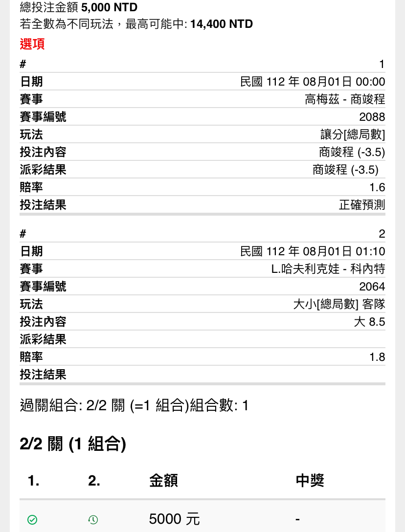 推 hpbank: 可惜沒套到2.3 直落二我買到3.75… 1.163.52.35 08/01 23:30