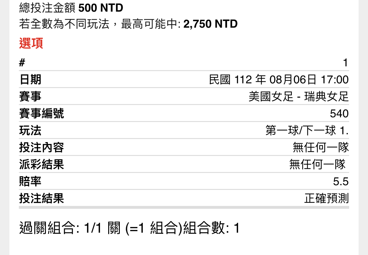 推 michael71230: 日甲已經2球了不開,去開女足 39.10.32.20 08/06 17:28