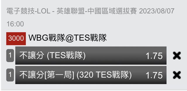→ lampar5566: 我買TES首殺+WBG首巴龍 其他沒買 114.137.82.75 08/07 16:13