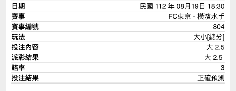 → SunnyRan: 我剛剛87分看到3倍買下去 結果出來2.45 101.9.194.153 08/19 20:25