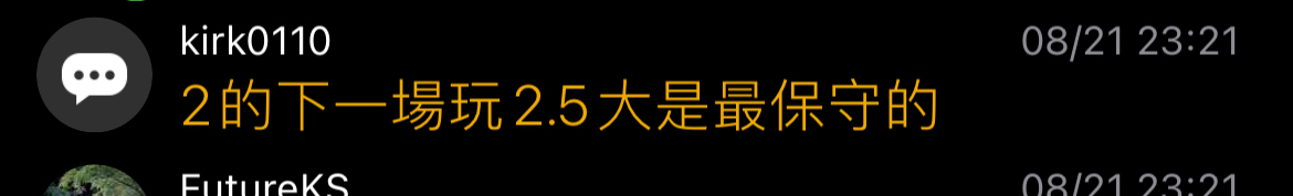 → kirk0110: 2的下一場玩2.5大是最保守的122.118.143.250 08/21 23:21