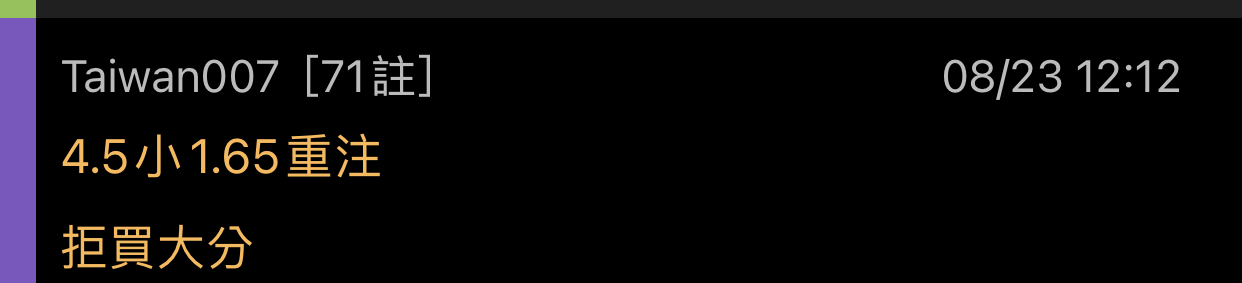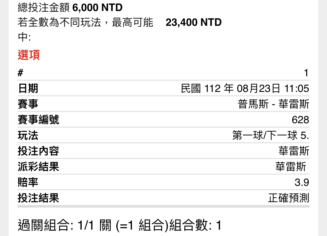 → Taiwan007: 剛那場買上半1.5大就不踢 42.77.32.178 08/23 11:41