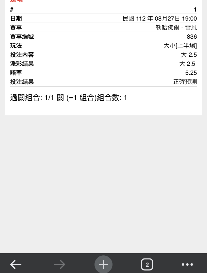 → tender573: 等等下一場的場中英超也是2.5大跟3.5大27.52.161.191 08/27 19:12