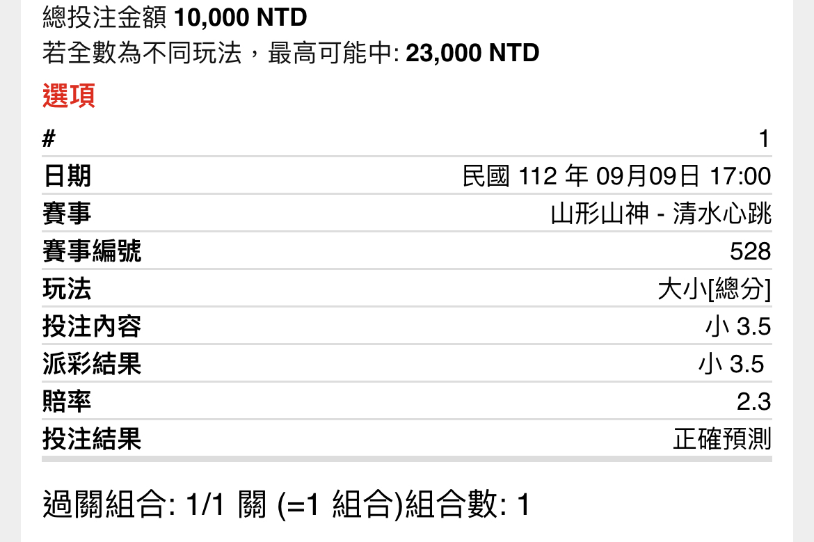 推 don999: 上3看到6倍就進球了 118.233.131.60 09/09 17:34