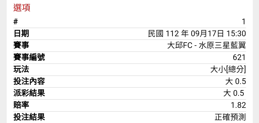 → kobe7477: 爽 補回上一場還倒賺 101.137.155.5 09/17 17:27