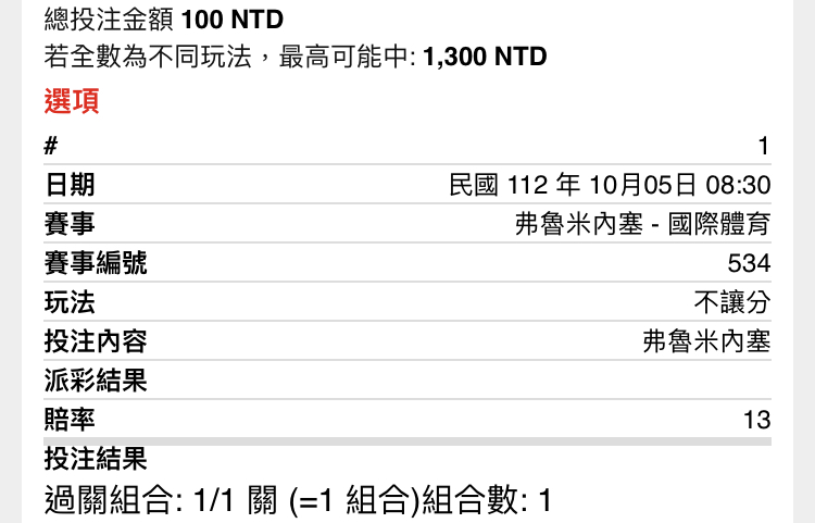 ptttt5566: 賽前客下盤嗎 27.52.220.23 10/05 10:18